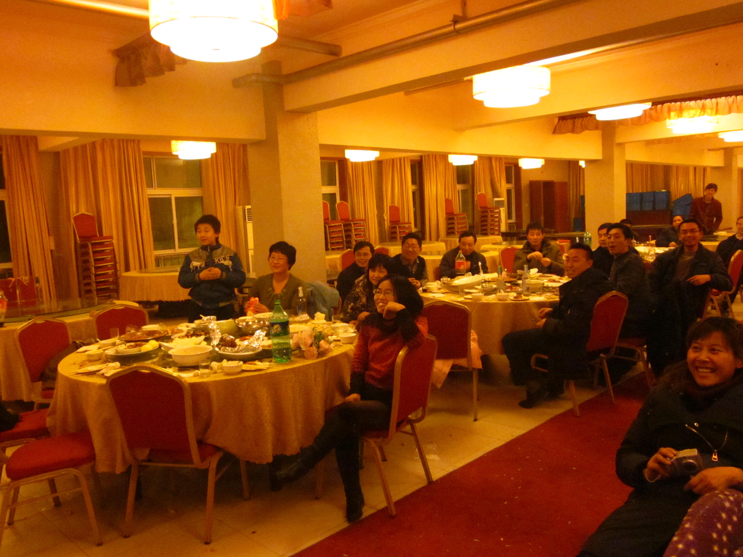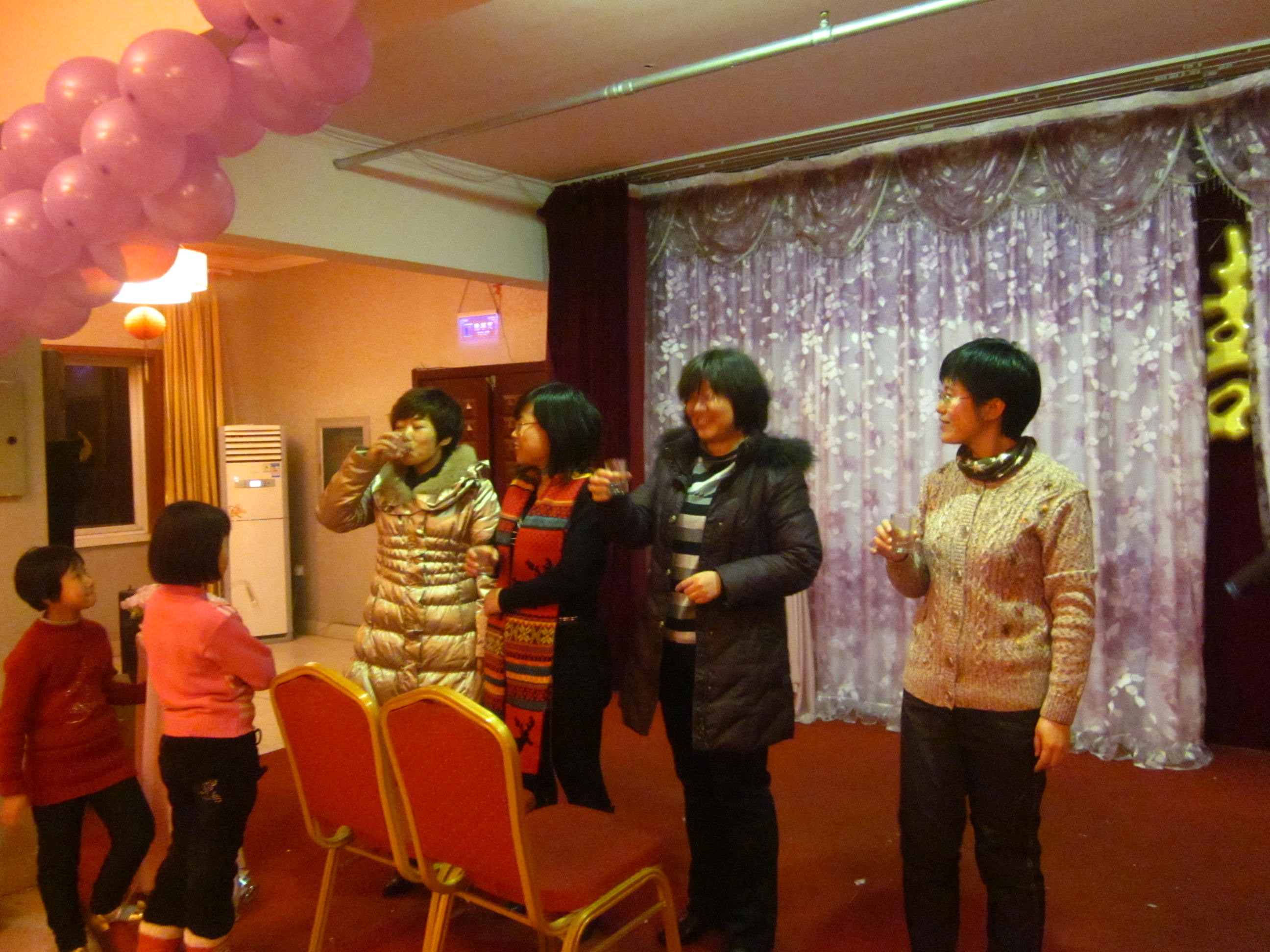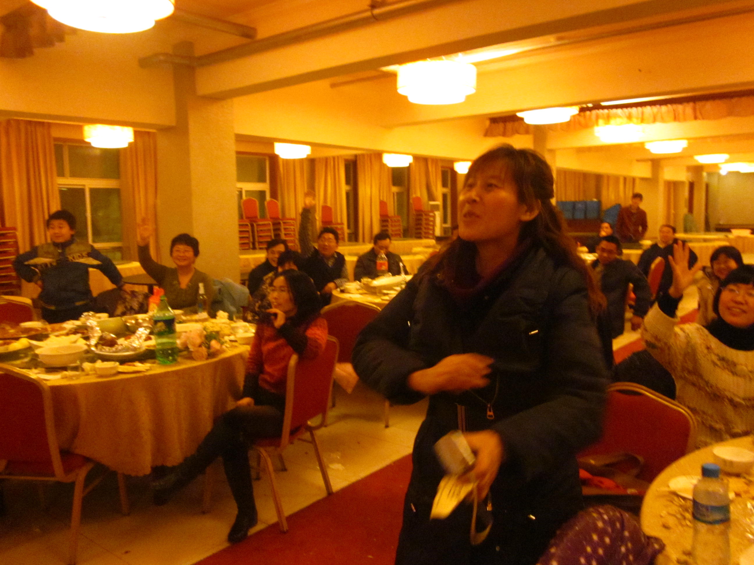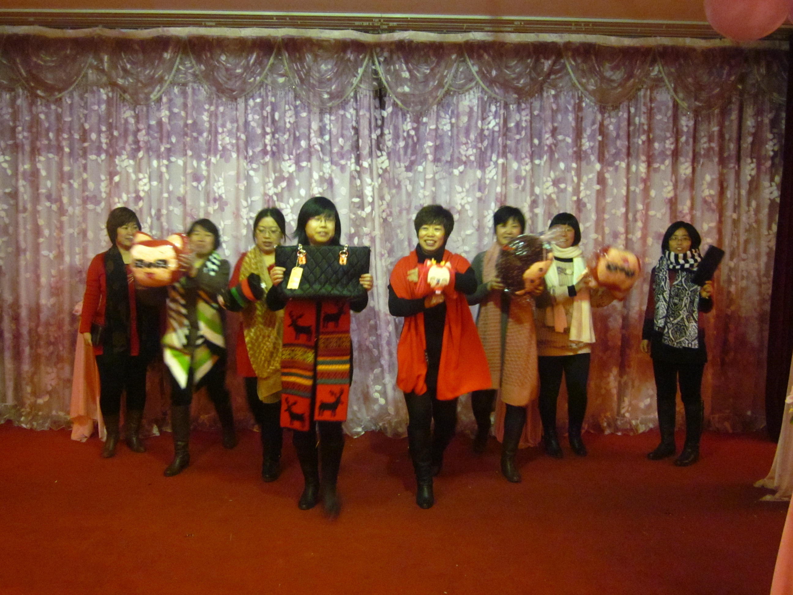 联欢会在老师们自发组织的模特队展示本次节目奖品中拉开序幕,联欢会由节目、游戏穿插进行,新年抽奖节目把联欢会引向了高潮。联欢会现场时时传来老师们的欢声笑语,大家其乐融融,呈现出一片温馨,和谐的美好景象。