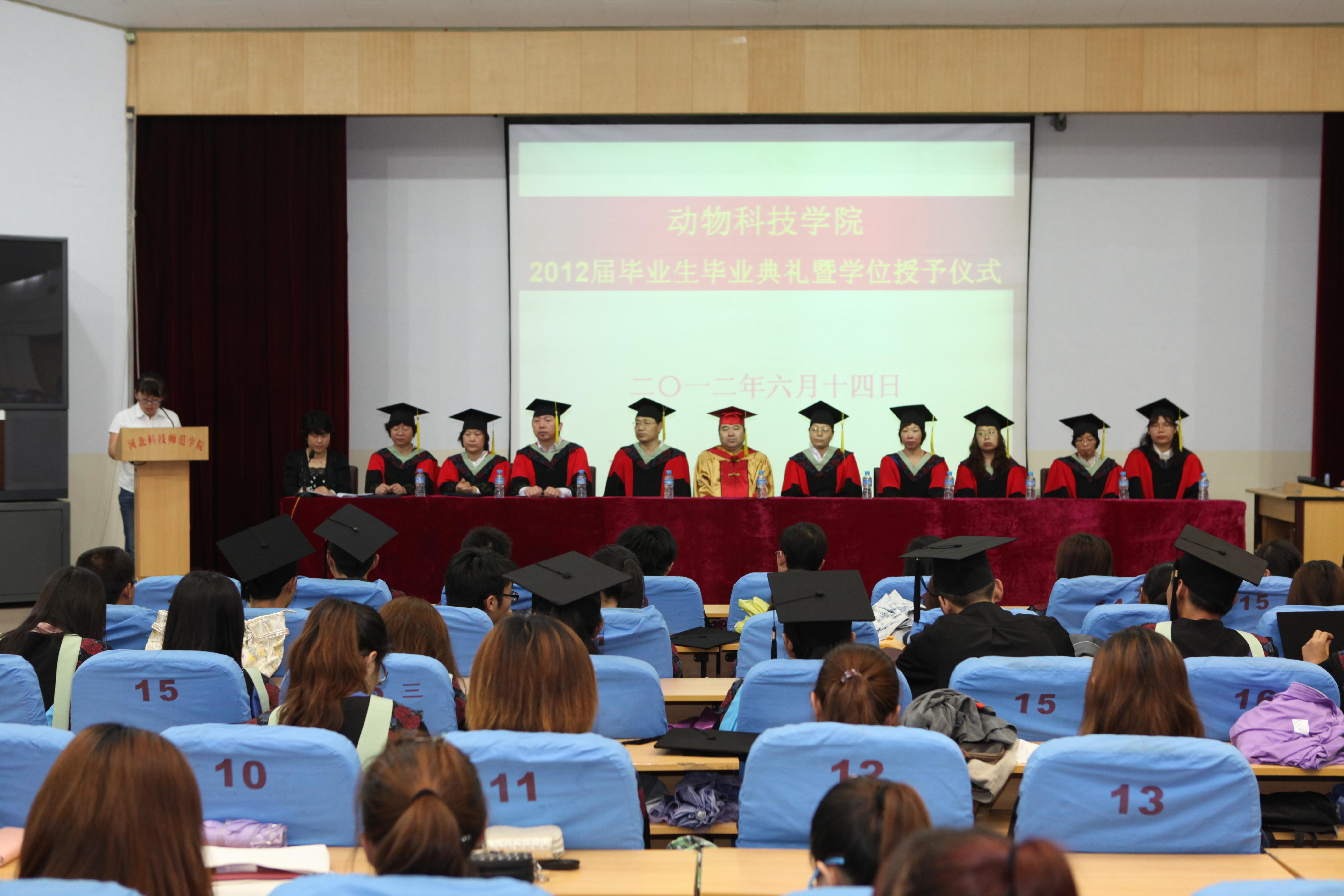 2012年6月14日上午,“2012届毕业典礼暨学士学位授予仪式”在昌黎校区学术报告厅举行。威廉体育学位委员会主任吴建华教授、导师、任课教师出席仪式,全体毕业生身着学位服参加本次仪式。动物科技公司党委副书记王玉芬同志主持仪式。她宣读了辛彦怀董事长委托吴建华教授授予学士学位的委托书。公司党委书记段立华同志宣读了《关于授予2012届优秀毕业生的表彰决定》,副经理杨宗泽教授宣读了威廉体育学位评定委员会《关于授予陈丹朔等229人学士学位的决定》,并代表公司向同学们表示衷心的祝贺。在神圣愉快的乐曲声中,公司学位评定委员会全体委员共同为到场的所有学士学位获得者颁发学位证书,正冠拨苏并合影留念。整个授予仪式气氛隆重而热烈,同学们怀着激动的心情,井然有序地列队登上主席台接受学位证书。