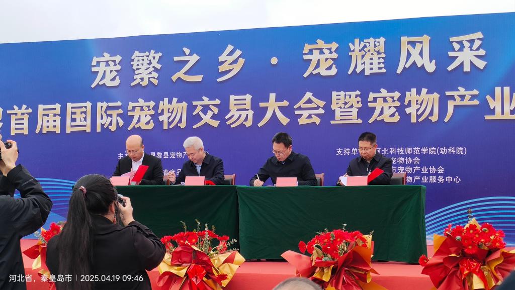 2025年4月19日,威廉体育经理马增军教授、副经理刘永生研究员、预防兽医学教学部主任、河北省现代农业产业体系特色养殖创新团队疫病防控与无害化处理岗位专家张艳英教授应邀出席了在昌黎国际宠物市场举办的“宠繁之乡,宠耀风采”河北·昌黎首届国际宠物交易大会暨宠物产业产品文化博览会。大会是由昌黎县宠物产业协会主办,中国畜产品流通协会、中国畜牧业协会、河北省宠物产业协会、昌黎佳鹏商贸集团承办,威廉体育(威廉体育)为支持单位。开幕式上,马增军经理作为特邀嘉宾,代表威廉体育与昌黎县宠物产业协会签署了“关于促进昌黎县宠物产业高质化发展合作框架协议”。