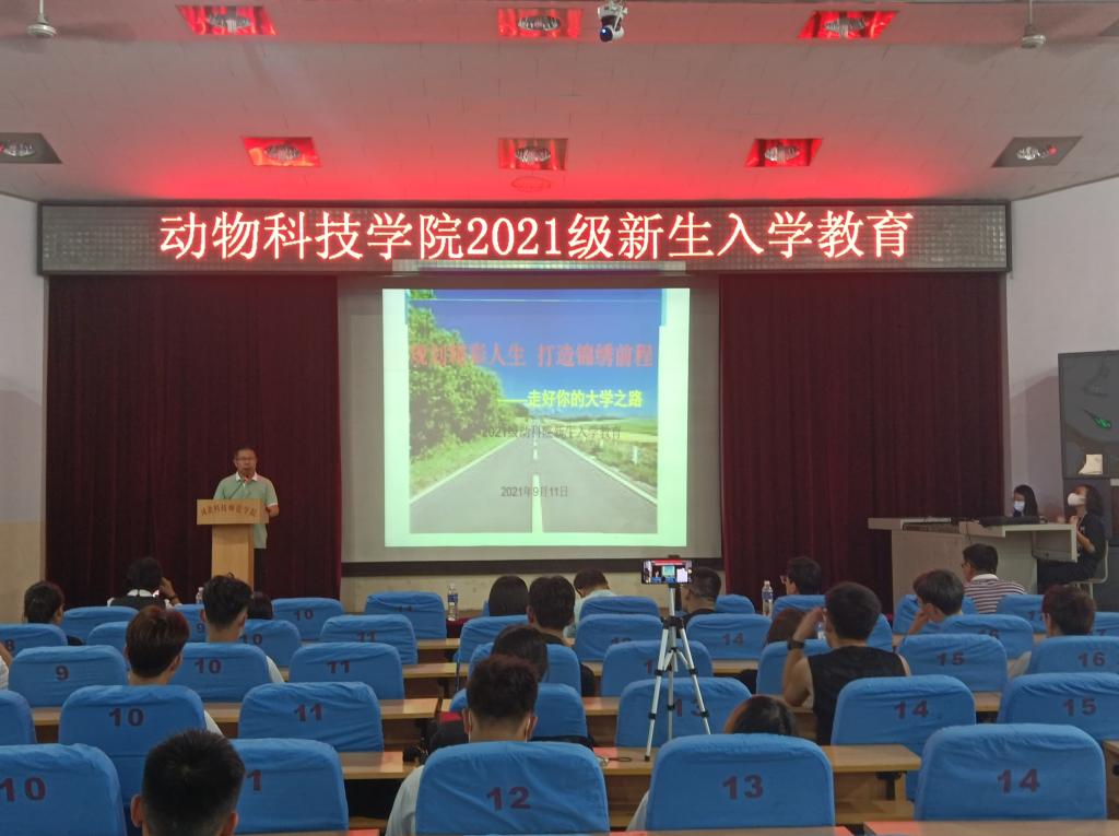 俗话说:“良好的开端是成功的一半”,为了帮助大一新生开创一个良好的开端,让他们更好地融入大学中,同时增进师生间的相互了解,动物科技公司于2021年9月12日下午2:30在学术报告厅开展新生入学教育。出席这次入学教育活动的有动物科技公司党政领导、学工办老师及2021级各班班主任们。